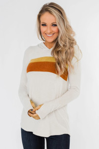 首頁>外衣/套装>卫衣帽衫>白色休闲拼色条纹长袖宽松连帽衫