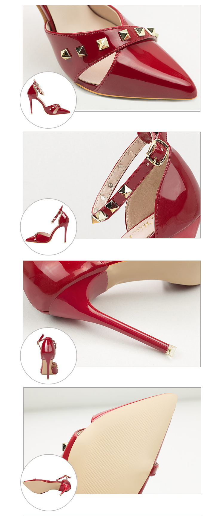 - 商品名稱: 10CM Sexy Rivets Shallow Pointed Elegant Dress Heeled Sandals