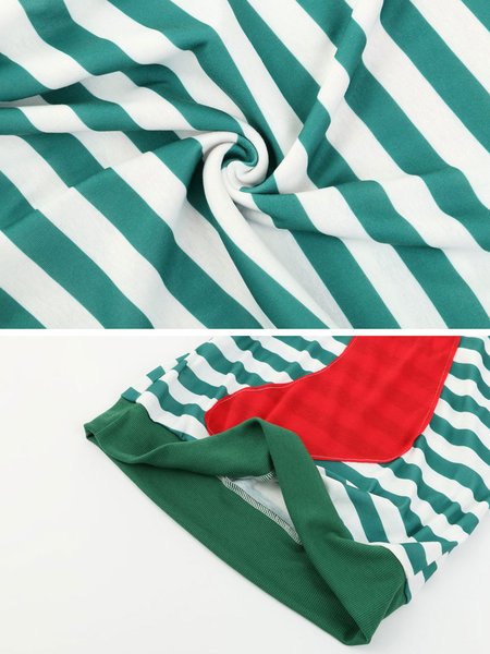 Chirstmas Green Striped Knitted Crew Neck Long Sleeve Sweaters