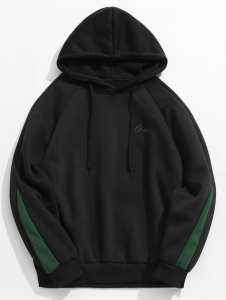 - 商品名稱: Contrast Letter Stripes Fleece Hoodie - Black