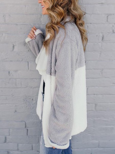 Fleece Fuzzy White Shawl Neck Vintage Solid Color-Block Teddy Bear Coats