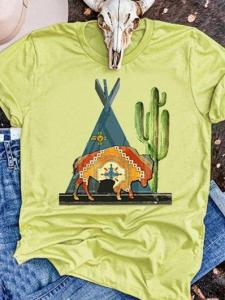 首頁>预售商品>Default>Lightgreen Floral-Print Round Neck Short Sleeve Shirts & Tops