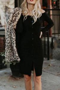 - 商品名稱: Off Shoulder Single Breasted Plain Long Sleeve Bodycon Dresses
