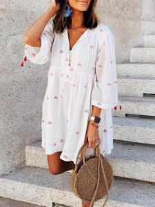 • 商品名稱: Plus Size Casual V Neck 3/4 Sleeve Printed Dresses