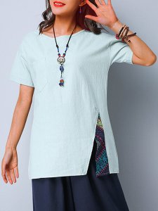 • 商品名稱: Plus Size Cotton And Linen Women Short Sleeve Solid Casual Top