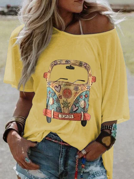 首頁>Causal Tops>Plus Size Women Short Sleeve Round Neck Vintage Car Floral Casual Tops