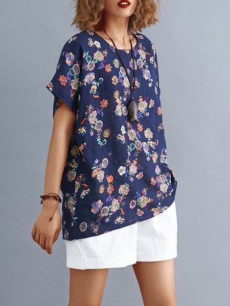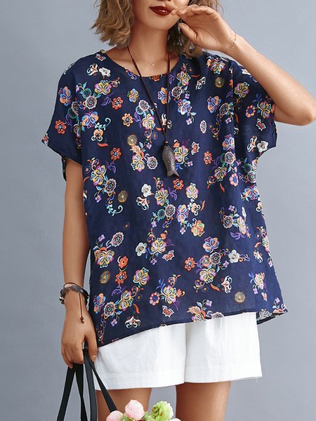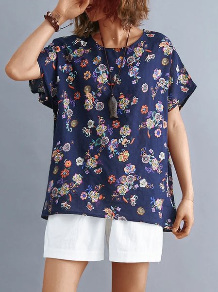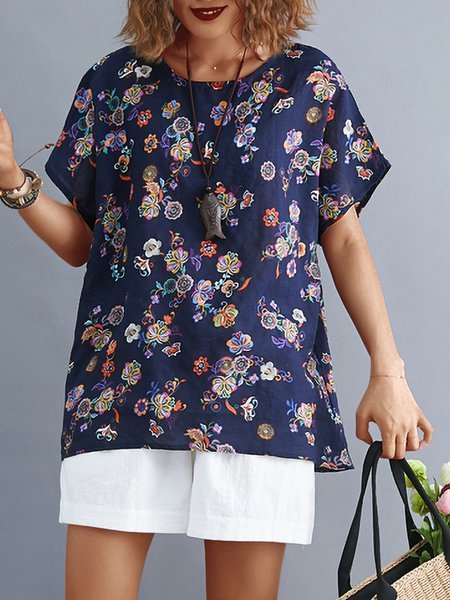 首頁>Causal Tops>Plus Size Women Short Sleeve Round Neck Vintage Floral Casual Tops