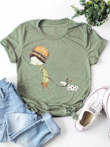 首頁>T-Shirts>Round Neck Floral Cotton-Blend Shirts & Tops