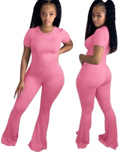 - 商品名稱: Solid Color Bell Bottom Jumpsuit with Short Sleeves