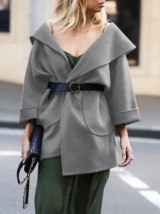 首頁>coat>Solid Pockets Long Sleeve Shawl Collar Coats