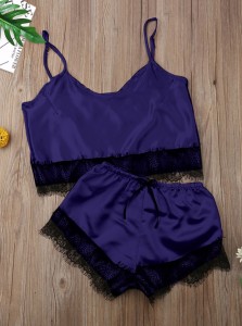 - 商品名稱: Summer Two Piece Satin Shorts Pajama Set with Lace Trims