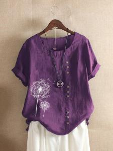 首頁>Causal Tops>Vintage Print Flower Short Sleeve Button T-Shirt