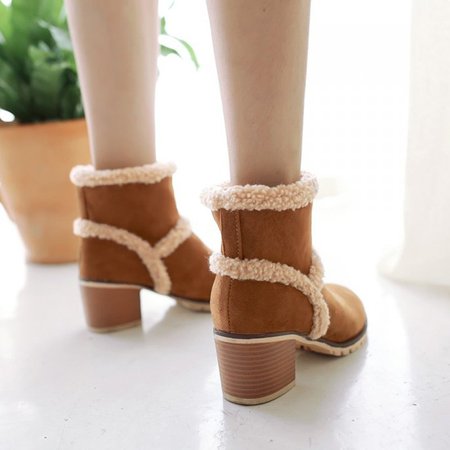 Womens Casual Chunky Heel Ankle Snow Boots